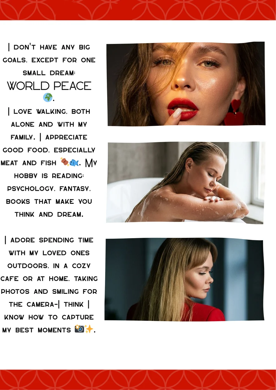 Velbloudí palec, Nahoře bez, Footfetish, Plácání po zadku, Erotický tanec, Špinavá mluva, Pokyny k masturbaci, Masáž, Masturbace, Na koníčka, Výstřik do obličeje, Prstění, Orgasmus, Zezadu, Hodnocení péra, Roleplay, Striptýz